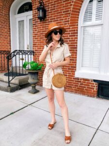 Hat (mine is old but this is the same style) | Romper | Slides | Bag | Sunglasses | Necklaces here, here and here I’m a year