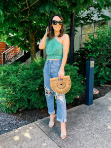 Tank – Lovers + Friends | Shorts – Agolde (size down) | Shoes – Express | Bag – Cult Gaia | Sunglasses – Amazon | Necklaces –