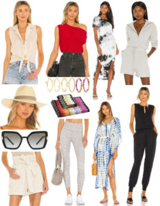 Button down tank | Drop shoulder tank | T-shirt dress | Romper | Hat | Bracelets | Towel set | Sunglasses | Shorts | Leggings | Swimsuit