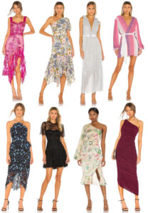 Pink lace dress | One shoulder floral dress | Silver belted dress | Striped belted dress | Blue lace dress | Black lace mini dress | One