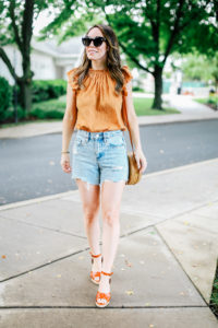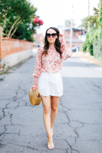 Top – Target | Shorts – Blank NYC (runs TTS) | Shoes – Scoop (these are under $30!!) | Bag – Nordstrom | Sunglasses – Le Specs