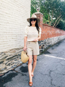 Top – 1.State | Shorts – Agolde (size down) | Shoes – Amazon (these run true to size) | Bag – Nordstrom | Sunglasses – Le Specs