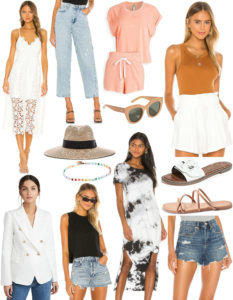Lace dress | Jeans | Loungewear set | Tank | Sunglasses | Hat | Anklet | White blazer | Black tank | T-shirt dress | White sandals