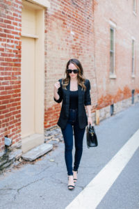 Blazer – Scoop (runs TTS) | Tank bodysuit – Sofia Jeans (runs small so size up, love the scoop neck version too) | Jeans – No Boundaries