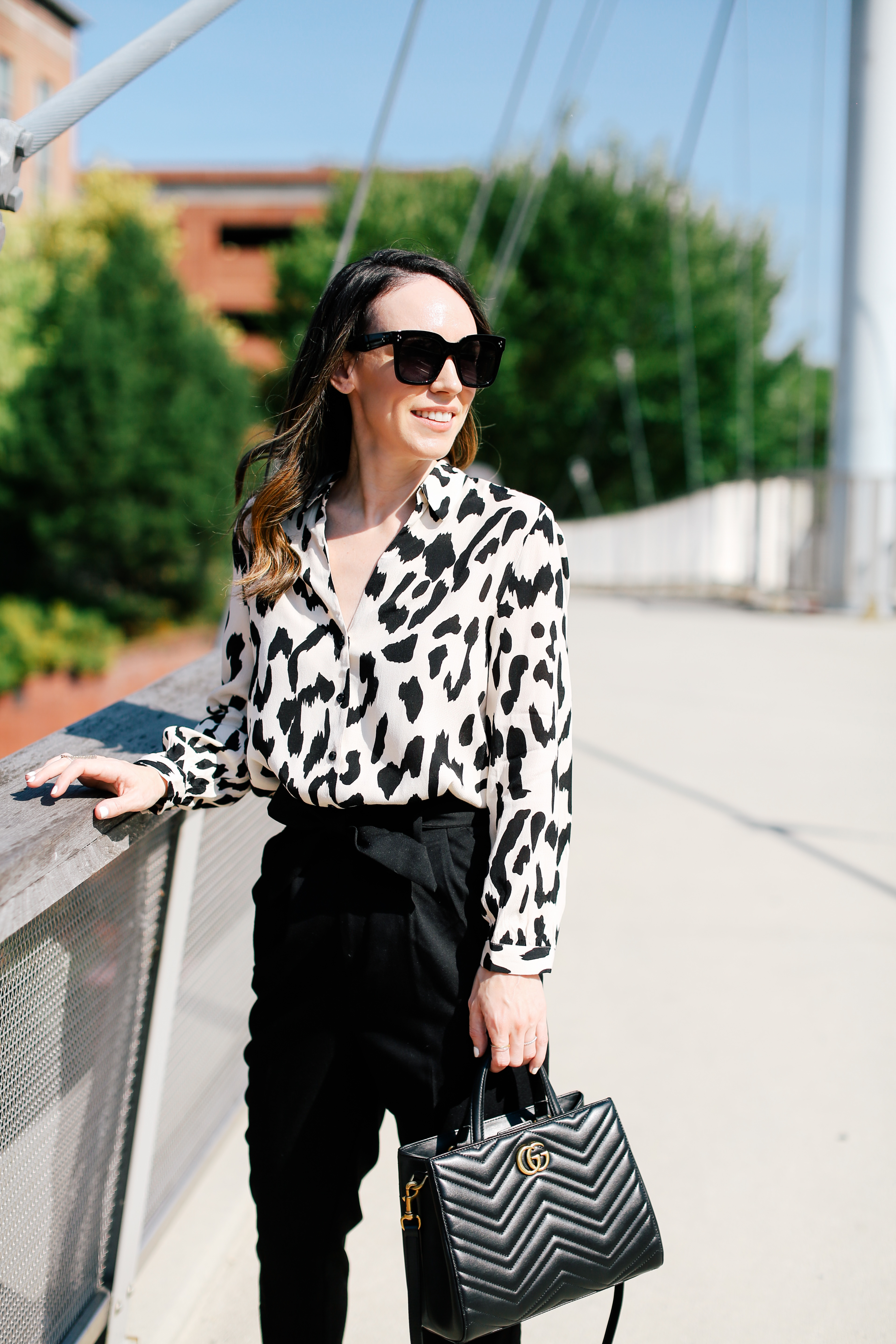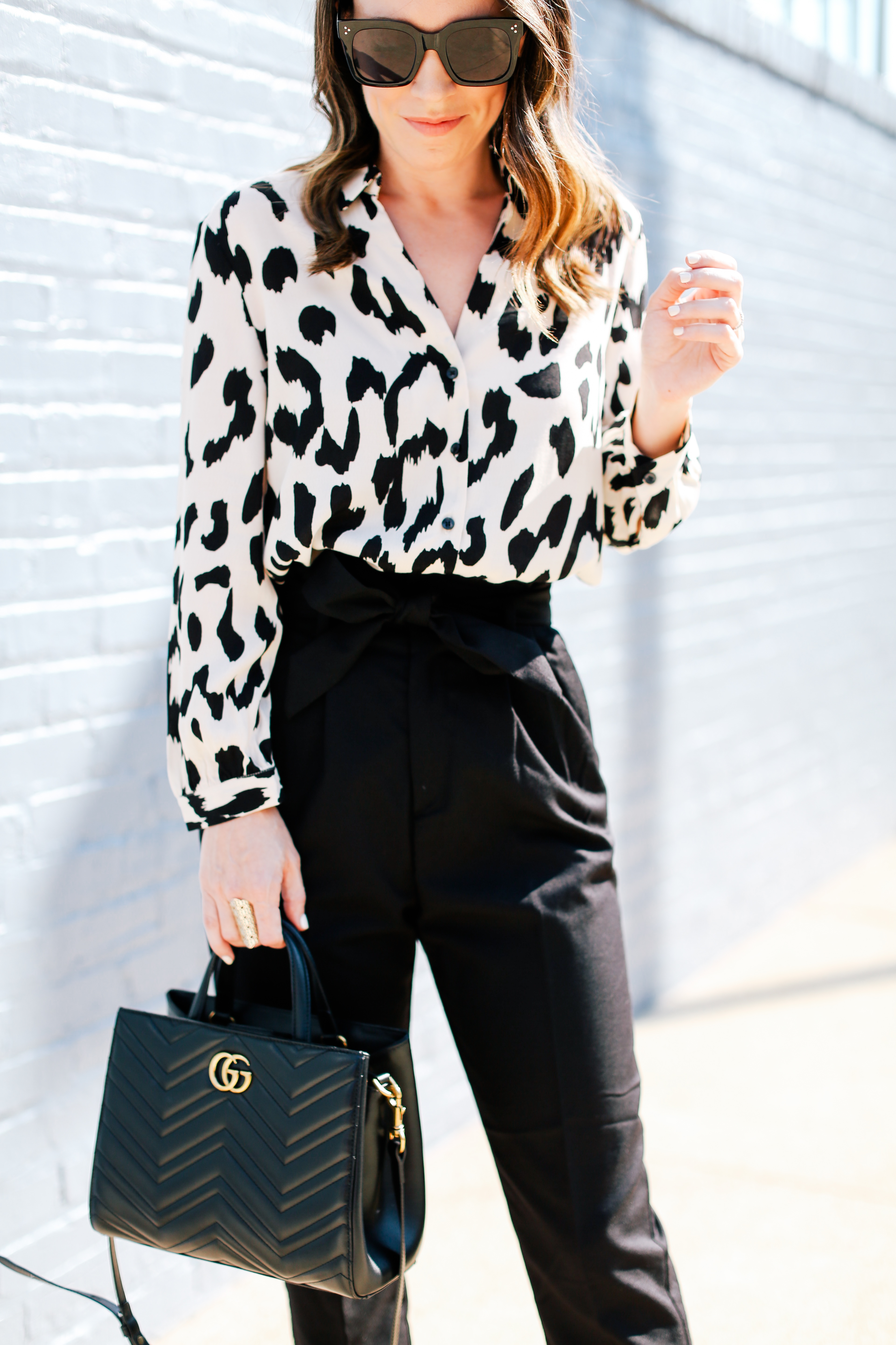 Shirt – Mango | Pants – H&M | Shoes – Zara | Bag – Gucci (similar version here) | Sunglasses – Amazon