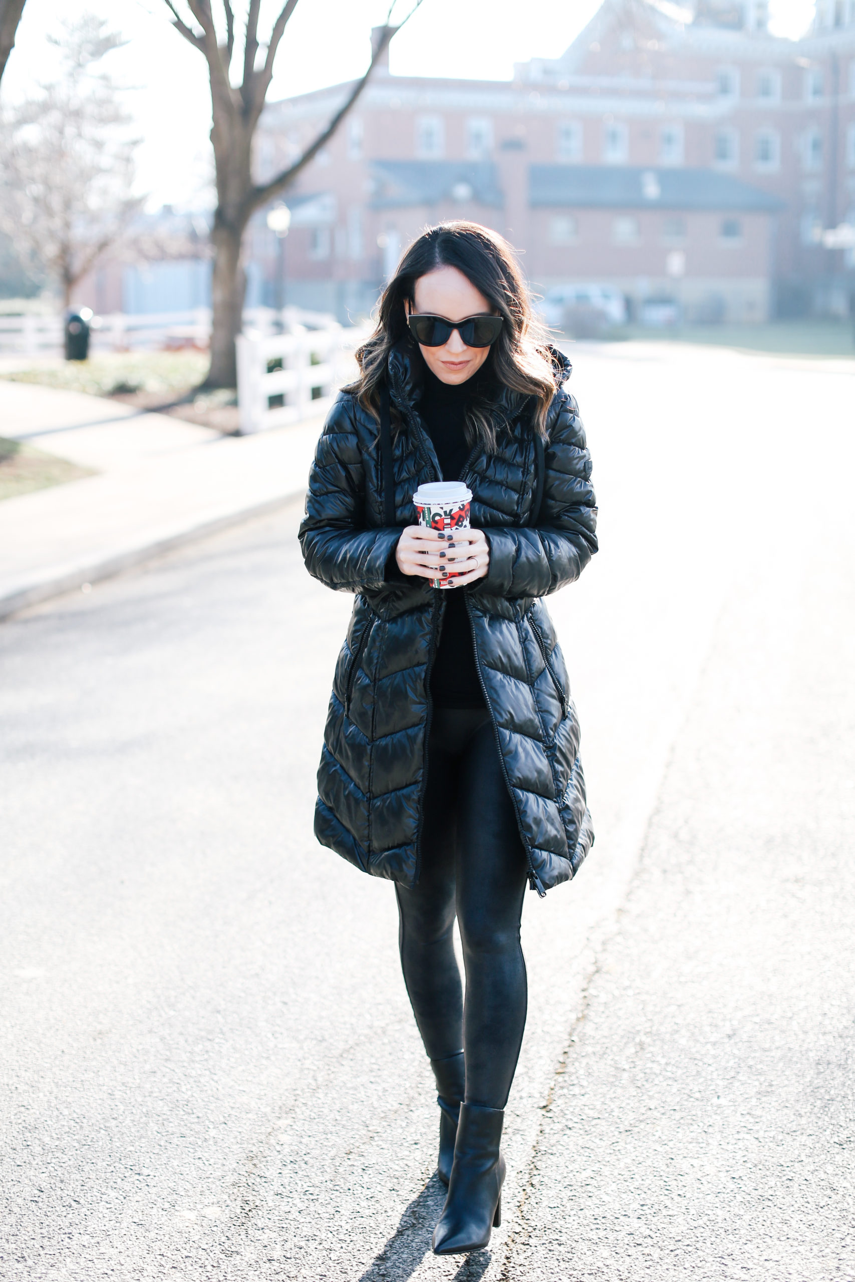 Jacket – Sam Edelman (50% off right now!!) | Turtleneck – Halogen (best layering turtleneck!) | Leggings – Spanx | Boots – Marc Fisher | Sunglasses – Le Specs