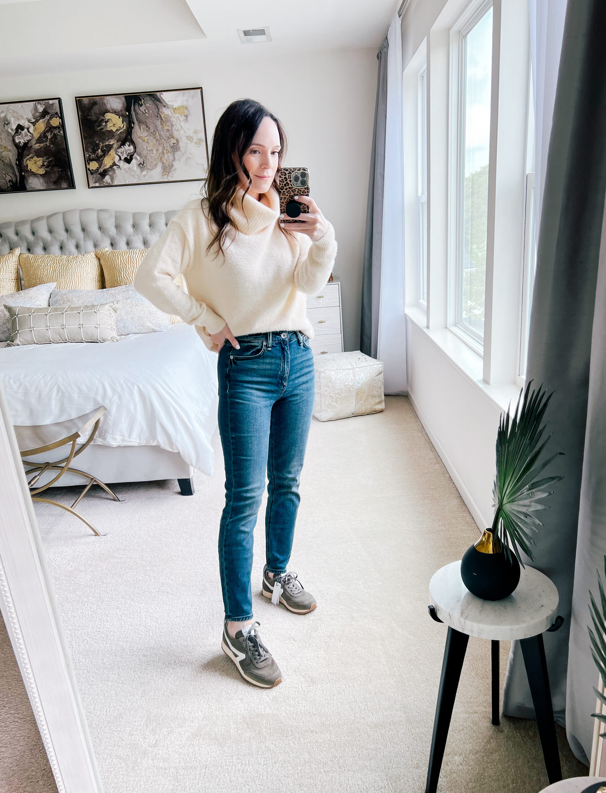 Free People Sweater (runs big, I’m wearing an XS) – The neck is too floppy for me and doesn’t stay up which is a real bummer. The overall fit of the sweater is perfectly oversized but the neck fit isn’t my favorite.