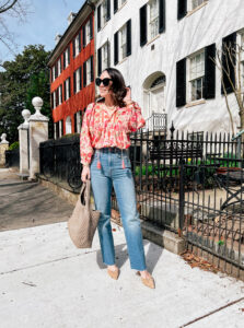 Shirt (code: MAREE15) | Jeans | Shoes (similar) | Bag | Sunglasses I’m not typically someone who gravitates towards florals or delicate prints, but once spring hits